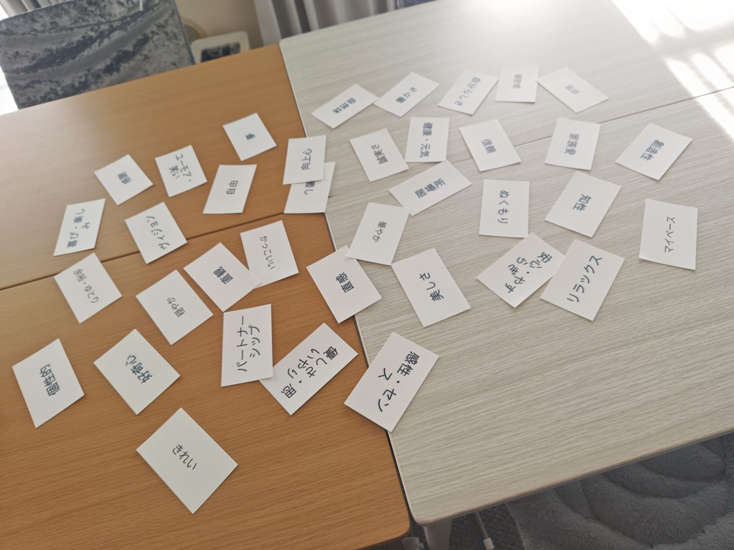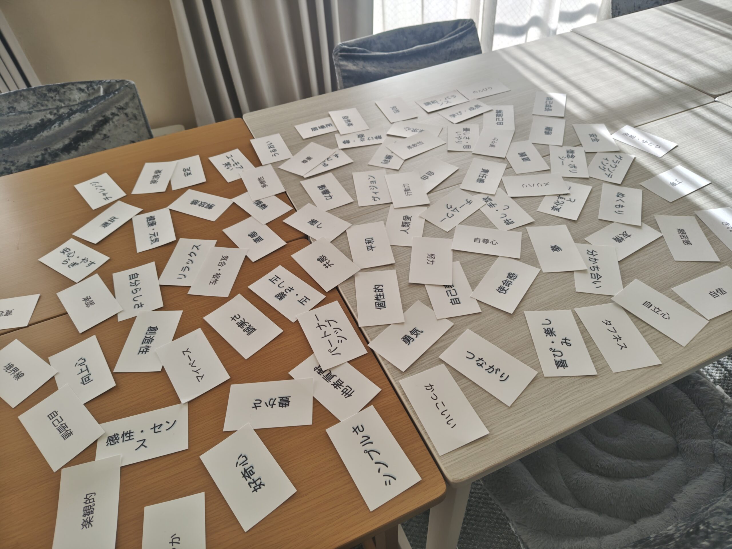 はじめに65枚作ったのですが、1月の in 千里山を開催した時に参加者から「こんな価値観もあるんじゃね?」と提案を頂きまして、確かにそうだ!という価値観を25枚も加えまして90枚になりました。