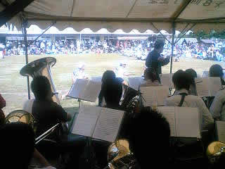 さて、この幼稚園の運動会のいいところは、園庭が天然芝なので柔らかい上に目にも心地よいのと・・・、あとは、生のブラスバンド・・・。