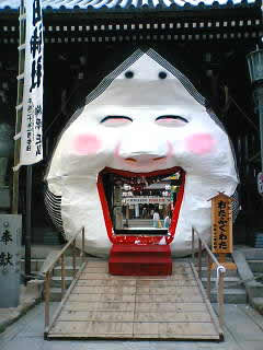 高さは5メーターほどもあるでかい顔がでーんとあり、その口をくぐると境内に入る、という仕組みになっている。その口は意外に狭く、気合を入れて背中をかがめないと、思い切り背骨を打ち付ける憎い演出まで施されている。