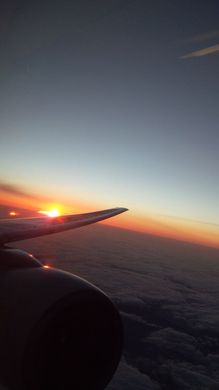 東京から福岡に向かう早朝の飛行機からの眺め。