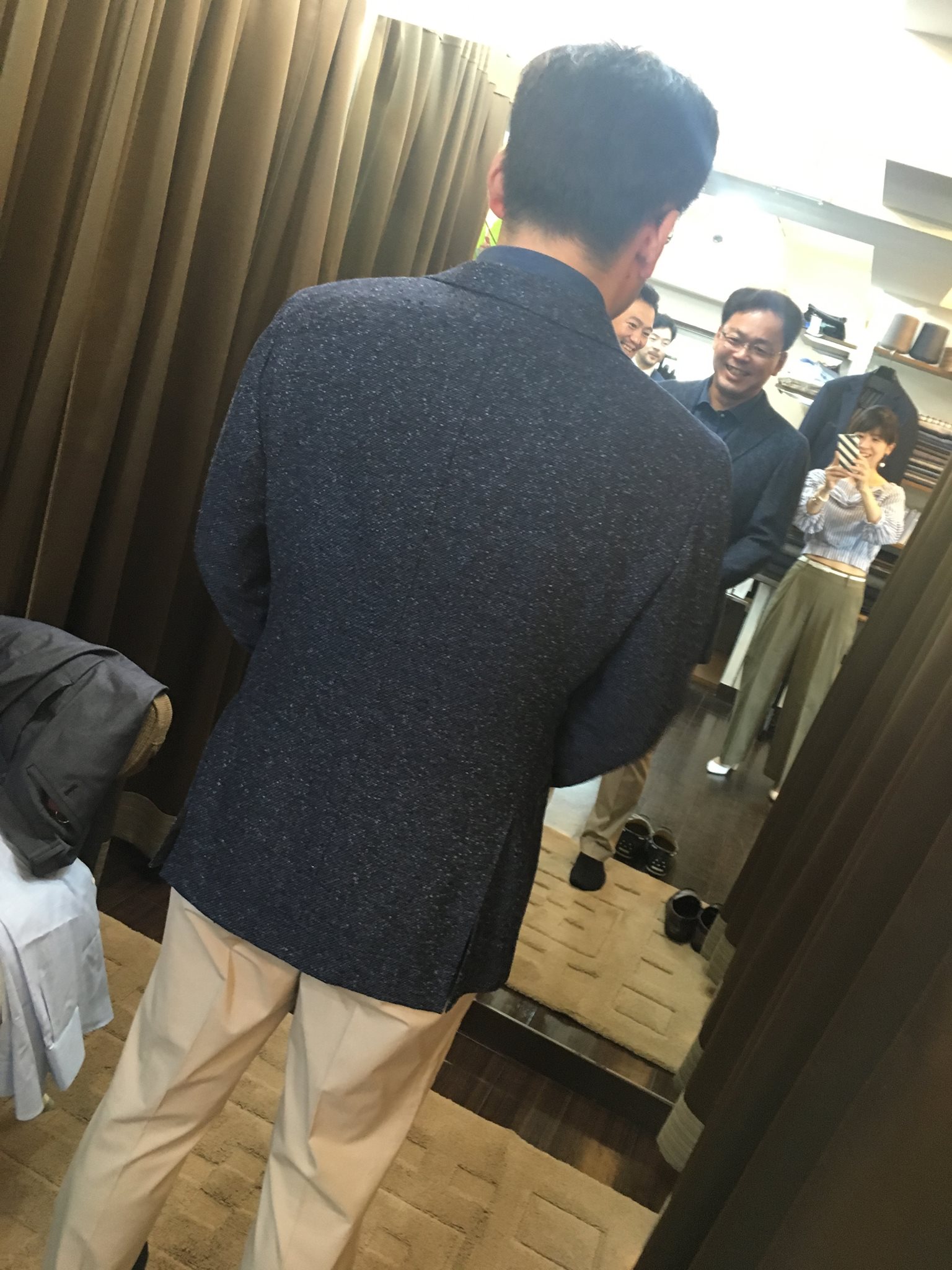 ジャケット、シャツ、パンツが出来上がったとの連絡を頂いてフィッティングに行ってきました。