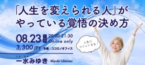 オンライン:8/23(水)20:00-21:30 一水みゆきの心理学講座「「人生を変えられる人」がやっている覚悟の決め方〜人生にコミットする〜」