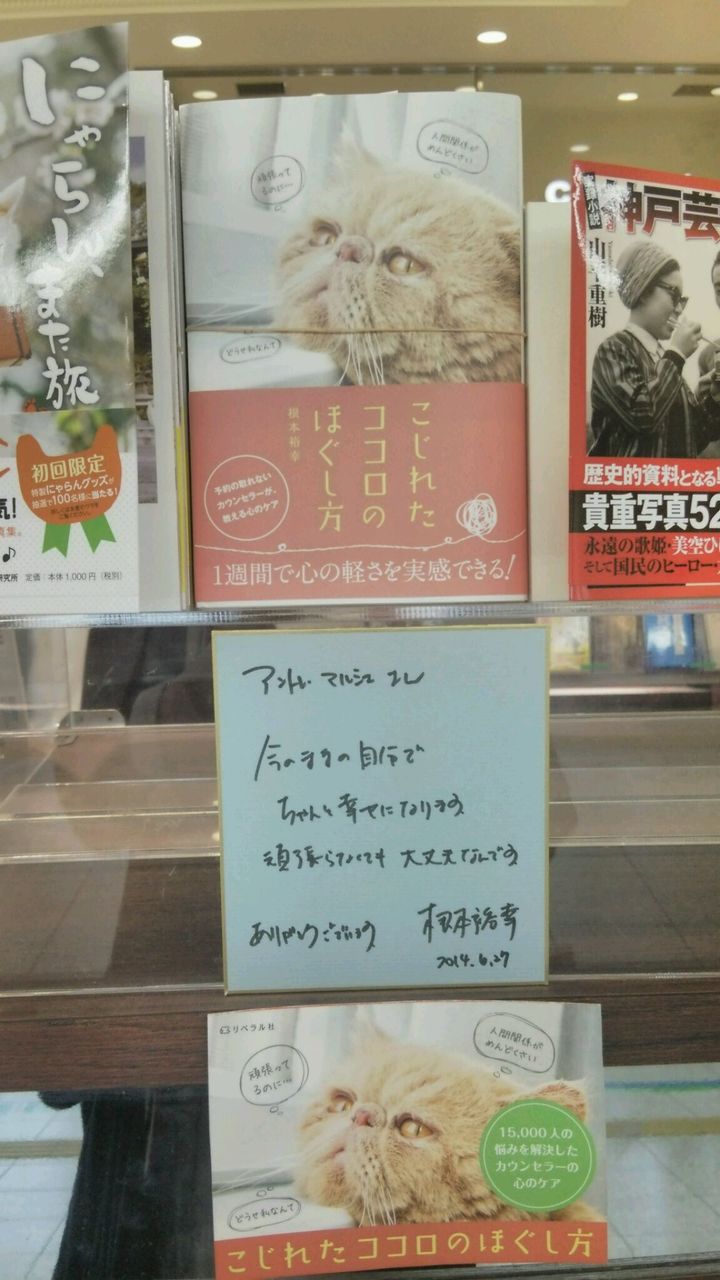 その間に挟まれる猫が表紙の私の本。ありがたいです。