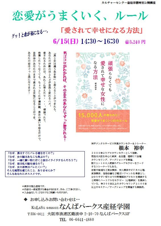 なんばパークス5F産経学園(KuLaSu season内)にて、特別オープン講座を開催させて頂きます。