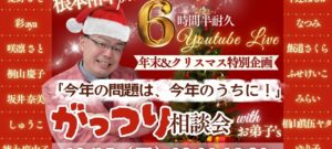 12/15(日)12:00-18:30 6時間半耐久YouTubeライブ 年末&クリスマス特別企画「今年の問題は今年のうちに!がっつり相談会 with お弟子’s」